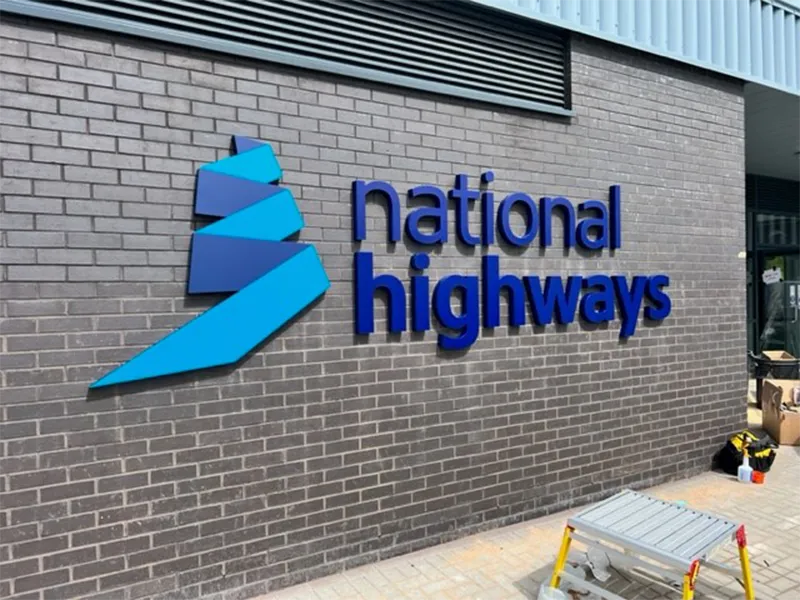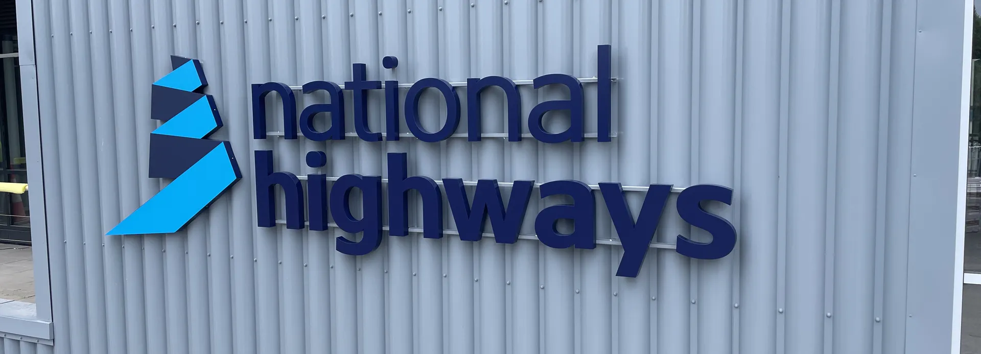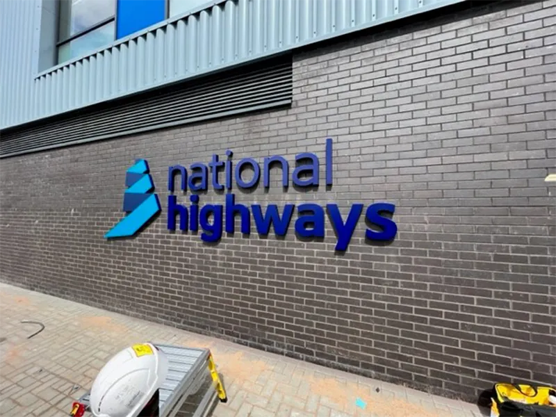 The signs were National Highways logos and lettering in a mixture of built up and flat plate. In addition at Strensham we provided photoluminescent fire exit signage on 1mm rigid plastic.