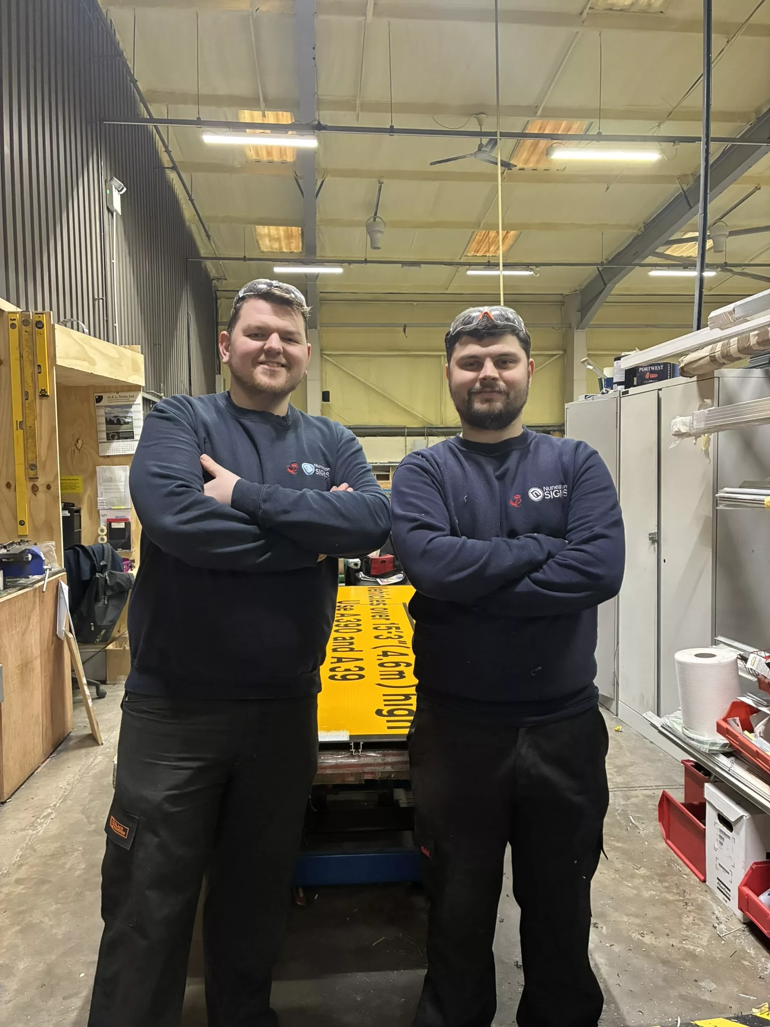 Since joining the fabrication team, Dan has developed a wide range of new workshop skills, such as operating the routing machine, reading measurements, choosing the correct tooling, and working with plates of different sizes. What was once unfamiliar is now second nature, with much of his workflow becoming muscle memory. Dan noted that working here has also improved his maths skills, particularly when using the riveter, which is used to permanently attach the traffic sign panel to a mounting post or a stiffening frame. He explained how the number of channels depends on the size of the sign, and how he uses his maths skills to measure the rads.